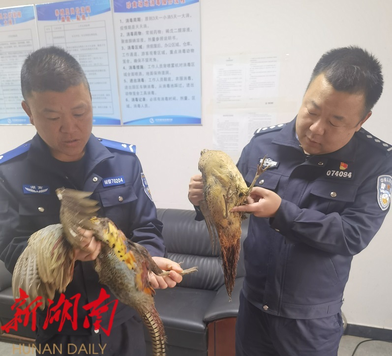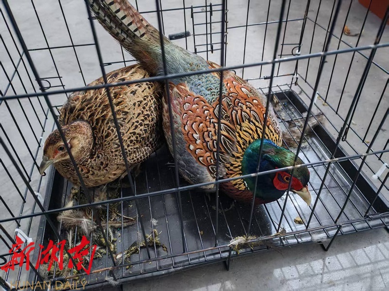 湖南日报·新湖南客户端3月31日讯(通讯员 戴广宇)近日,湘阴县公安局城南派出所民警在金龙镇天井坡附近巡逻时,发现3名男子形迹可疑,经盘查,现场扣押活野鸡两只、热成像无人机一台、狩猎网一张。经该县林业局认定,涉案的野鸡为“三有”保护动物——雉鸡和铜长尾雉,目前,涉案动物已放生,案件正在进一步侦破当中。