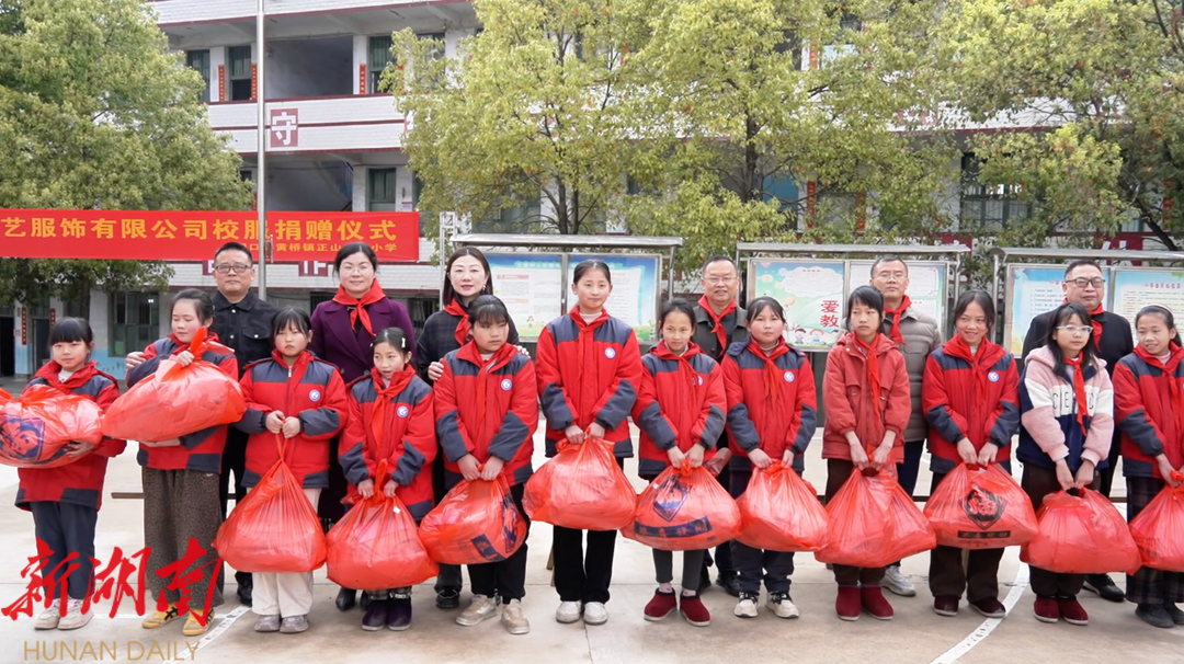 洞口融媒3月31日讯(记者:肖皓静 通讯员:李小华) 3月31日上午,洞口县黄桥镇正山完全小学洋溢着温暖与喜悦,一场“校友回湘”爱心捐赠校服仪式在这里温情上演。
