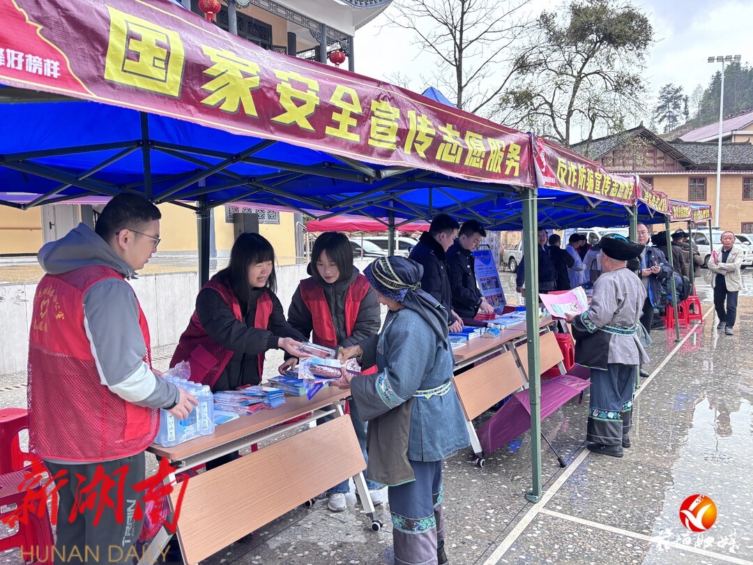 湖南日报·新湖南客户端3月31日讯(通讯员:张梦萍 ) 春雨淅淅,春风习习。3月28日,在第10个全民国家安全教育日即将来临之际,湘西州委办、花垣县委办、花垣县委政法委、花垣县委外事办在十八洞村综合照料中心开展以“全民国家安全教育 走深走实十周年”为主题的国家安全宣传活动,为即将到来的“4·15”全民国家安全教育日奏响序曲。