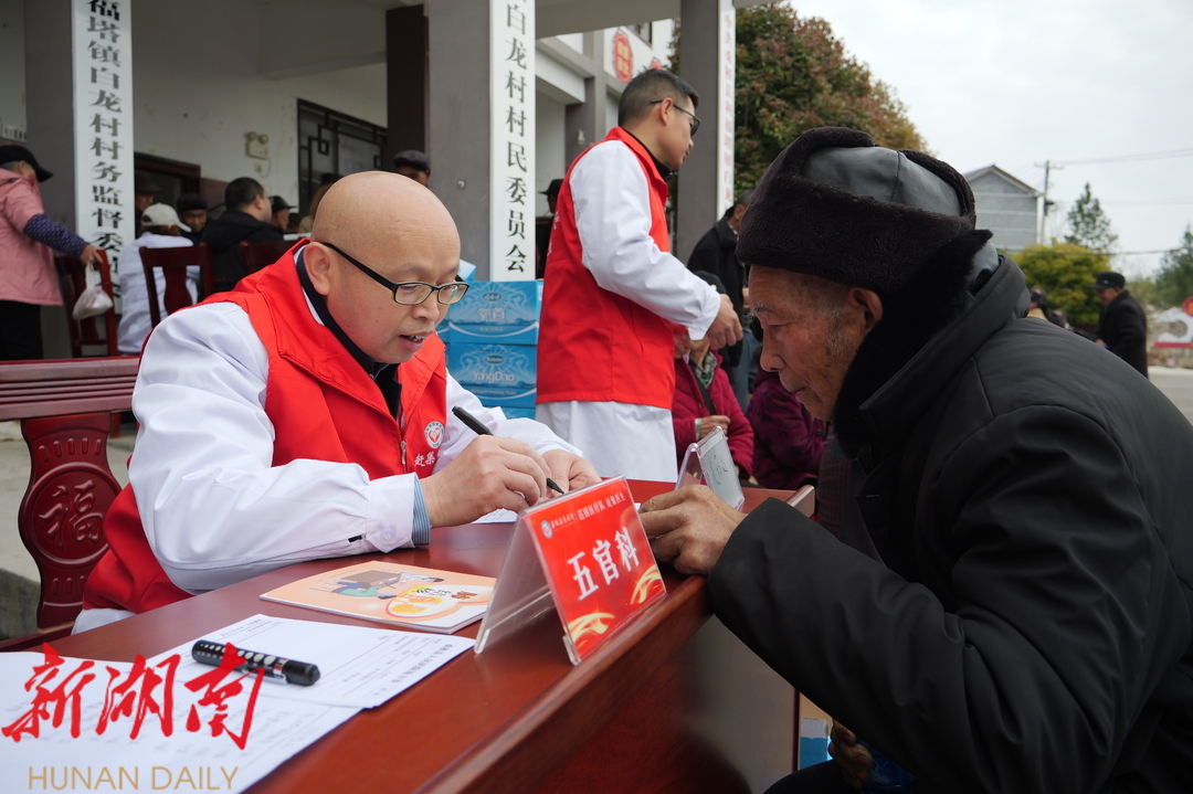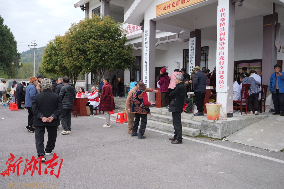 一大早,白龙村村委会广场便排起了长队。来自桑植县总医院内科、外科、妇科等科室的20名骨干医护人员,携带专业医疗设备,现场搭建临时诊台。村民们在工作人员引导下有序进行分诊、检查、咨询和领药。