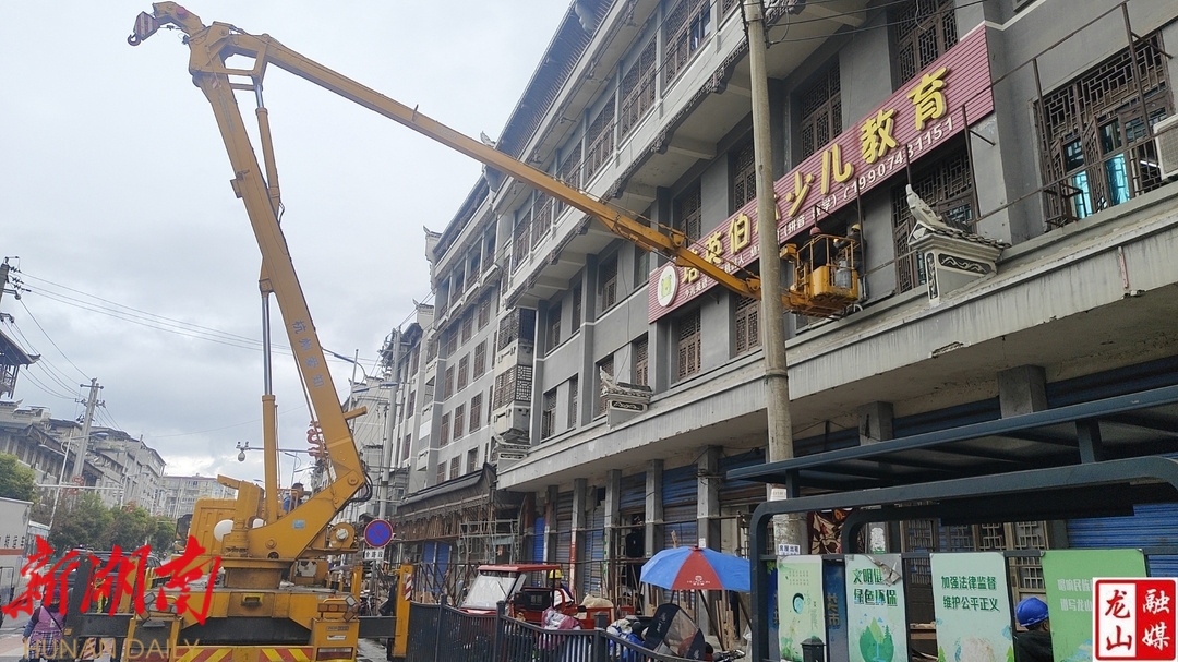 龙山县融媒体中心3月31日讯(通讯员 夏智姗)3月29日,县城市管理和综合执法局对城区朝阳路原街中街路段存在安全隐患的门头招牌及户外广告设施进行集中拆除。