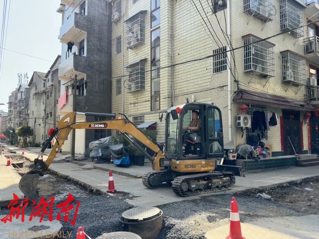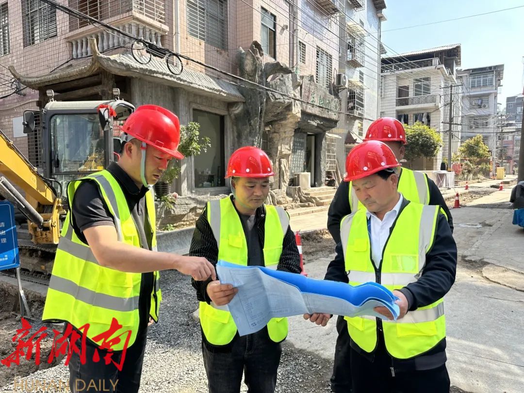 近日,记者在澧水河南部片区燃气管道更新改造项目南庄坪街道个体商业城施工现场看到,挖机正挥舞着机械臂紧张作业,施工人员对照设计图纸仔细勘查,现场一派忙碌景象。