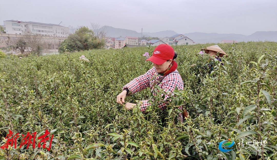 靖州融媒4月1日讯 (通讯员 梁华)明前茶,贵如金。3月31日,靖州苗族侗族自治县二凉亭老树茶园迎来采摘高峰。十多名采茶人指尖翻飞,抢抓明前茶“黄金期”,处处跃动着春日的“增收图景”。 近年来,该县立足本地实际,将茶产业与乡村振兴战略紧密结合,致力于把“小茶叶”发展成助农增收的“大产业”。