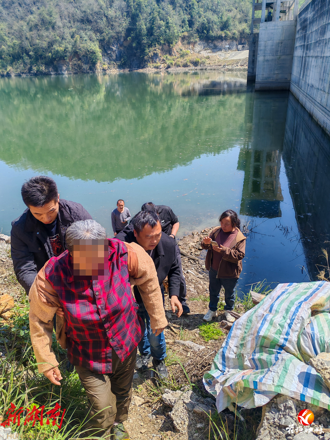 被救妇女在 赶到现场的镇村干部帮助下离开现场(本组图片均由通讯员提供)