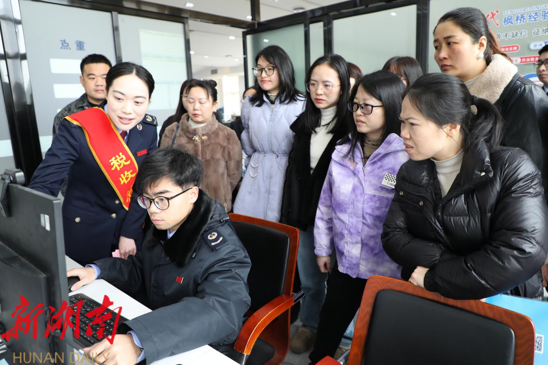 活动中,讲解员依次向受邀代表们详细介绍了咨询辅导区、自助办税区、窗口服务区和征纳互动服务运营中心等功能区的详细运转情况。在宣传“税收 法治 公平”的同时,还进一步让广大纳税人缴费人理解税收、支持税收。此次通过“沉浸式参观+互动式体验”的形式,让受邀代表们深入感受了宁远县税务局智慧税务建设与便民办税举措。在宁远县征纳互动服务运营中心,税务工作人员现场指导了企业代表办税员如何高效操作使用征纳互动平台,并介绍了该平台的运行逻辑和积极成效。