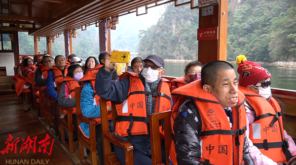冬日里的武陵源,景色美不胜收。奇峰异石冷峻而神秘,金鞭溪灵动、溪水清澈见底,宝峰湖幽静、山歌声声入耳。“风景美,山歌也好听,感觉自己像闯入了仙境一样,每一眼都是惊艳,都舍不得离开了。” 刘先生一边连连称赞,一边拍照留念。