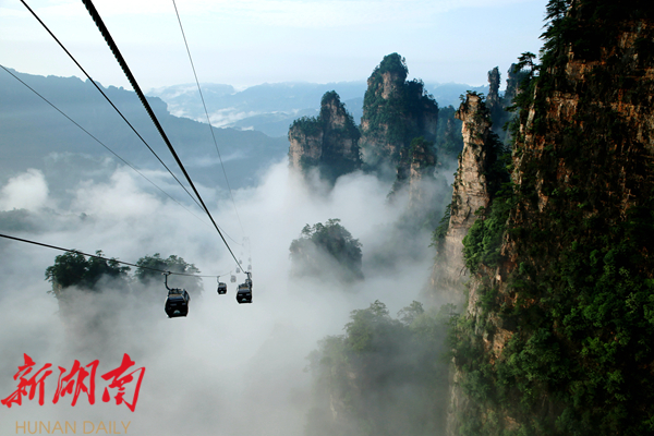 “就像3.8亿年前的乾坤柱,经历七次地震不倒。你那些过不去的坎,在时间面前都是尘埃。”在张家界国家森林公园,立于黄石寨云海之巅,讲解员阿见正在侃侃而谈。