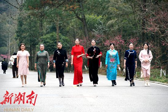 走进黄石寨梅园,仿佛穿越千年。身着华丽汉服与典雅旗袍的模特们,迈着优雅的步伐穿梭于梅园花丛间,传统服饰的精美与梅花的娇艳相互映衬,构成一幅幅绝美的画面,引得现场游客纷纷驻足拍照。