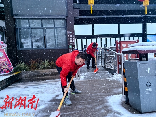 此外,面对赏春雪的反季游、错峰游,张家界国家森林公园服务依旧“热辣滚烫”,铲雪护游、个性化打卡以及贴心周到的提醒,游客们纷纷表示“错峰出行体验也很好”。