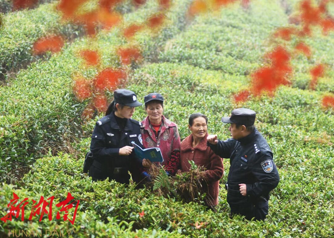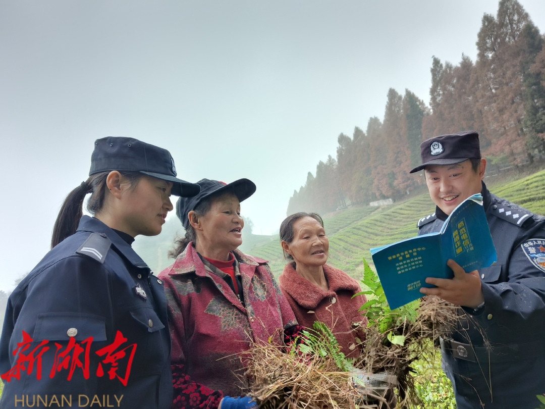 天子山派出所民警在茶园给劳作群众开展反诈和禁毒宣传