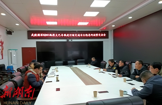 湖南日报·新湖南客户端2月24日讯(通讯员 周兵)2月24日上午,武陵源区交通运输行政执法大队联合区道路运输服务中心召开G241路段大巴车故意低速行驶交通安全隐患约谈会,全区5家客运企业主要负责人参加。