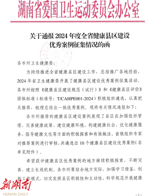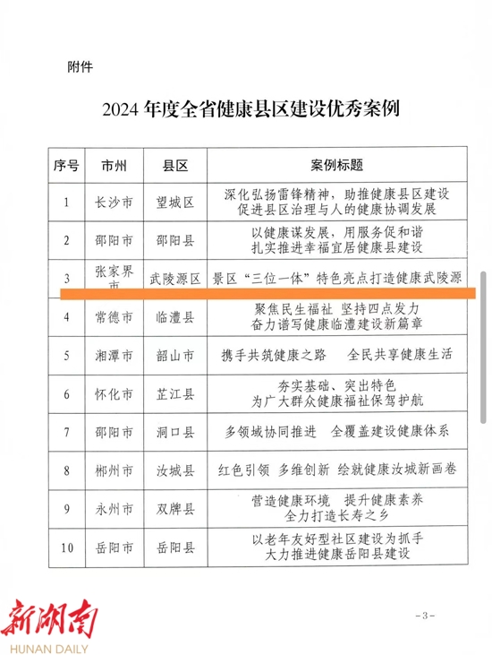 喜报!张家界市武陵源区入选全省健康县区建设优秀案例