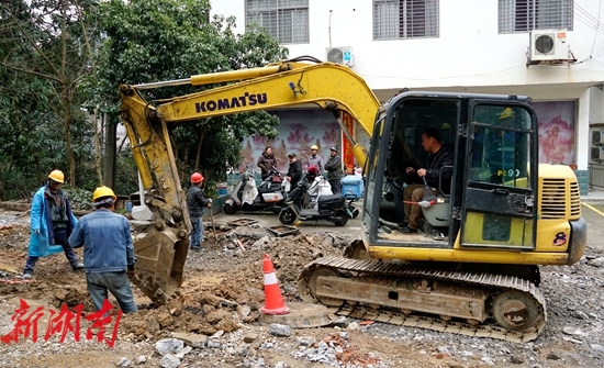 “哒哒哒......”2月19日,伴随着机械的轰鸣声,武陵源区吴家峪片区老旧小区改造配套基础设施建设项目正紧张有序推进,机械与人工各司其职、协同作战,进行路面开挖作业,施工现场热火朝天。