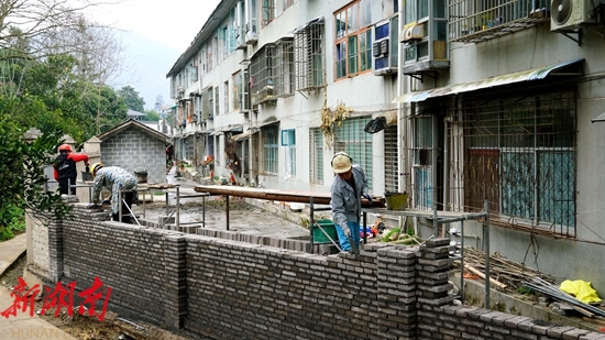 与此同时,武陵源区交通局宿舍改造项目也正有条不紊地施工,工人们有的挑砖、有的搅拌混凝土、有的修缮外墙,一派忙碌。