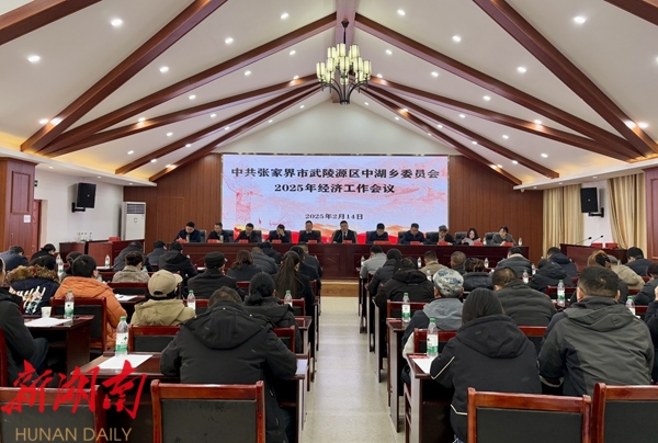 武陵源区融媒体中心2月14日讯(通讯员 彭方源)2月14日,中湖乡召开2025年经济工作会议,深入学习贯彻党的二十大和二十届二中、三中全会精神,全面贯彻落实中央、省委、市委和区委经济工作会议精神,总结2024年全乡经济工作,分析当前经济形势,部署2025年经济工作。
