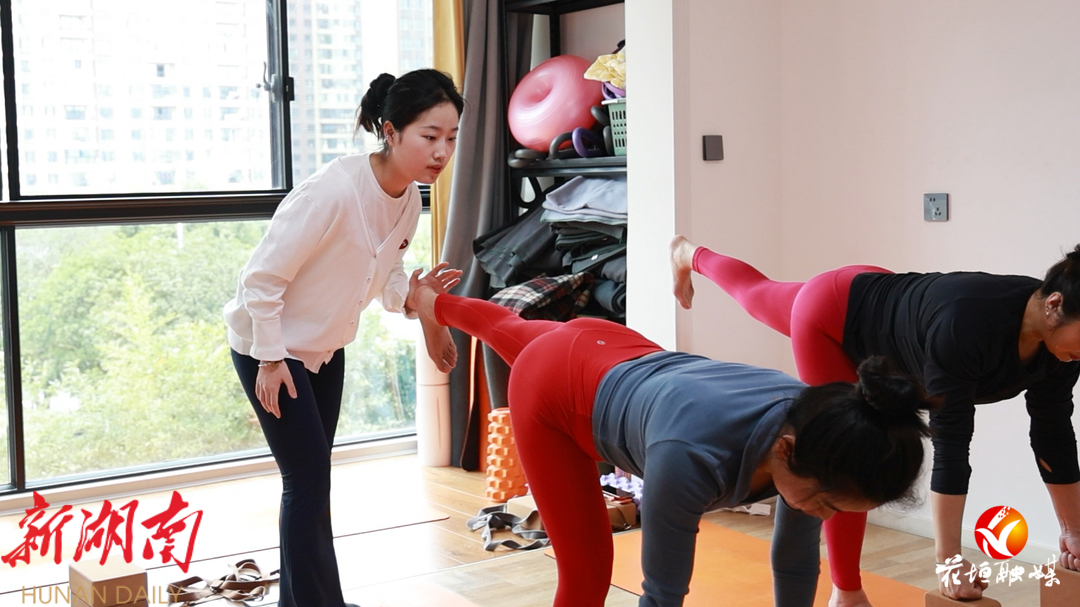 2023年10月,王俐妃带着从重庆学习的悠然云瑜伽、海南理疗瑜伽等专业技能回到花垣,与三名“00后”大学生组成创业团队。从零起步的他们,将传统瑜伽、艾扬格瑜伽、古典普拉提作为日常课程,创新推出晨暮教学法,针对不同年龄段学员设计专属课程。