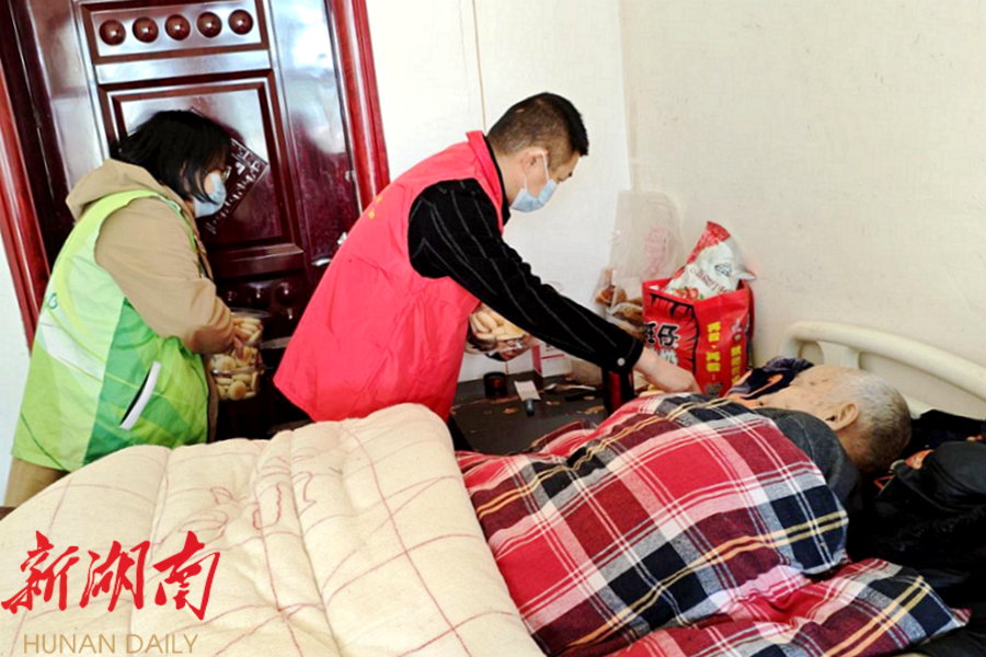 在清扫过后,志愿者们和老人话家常、聊生活,关心询问他们的身体状况和生活状况,耐心倾听老人们分享生活中的喜怒哀乐。志愿者们还特别关注失能老人的需求,耐心协助护理人员完成助餐服务等工作。同时,志愿者们还给老人带来了适合他们的零食等物资,让他们感受到来自组织的关心和关爱。