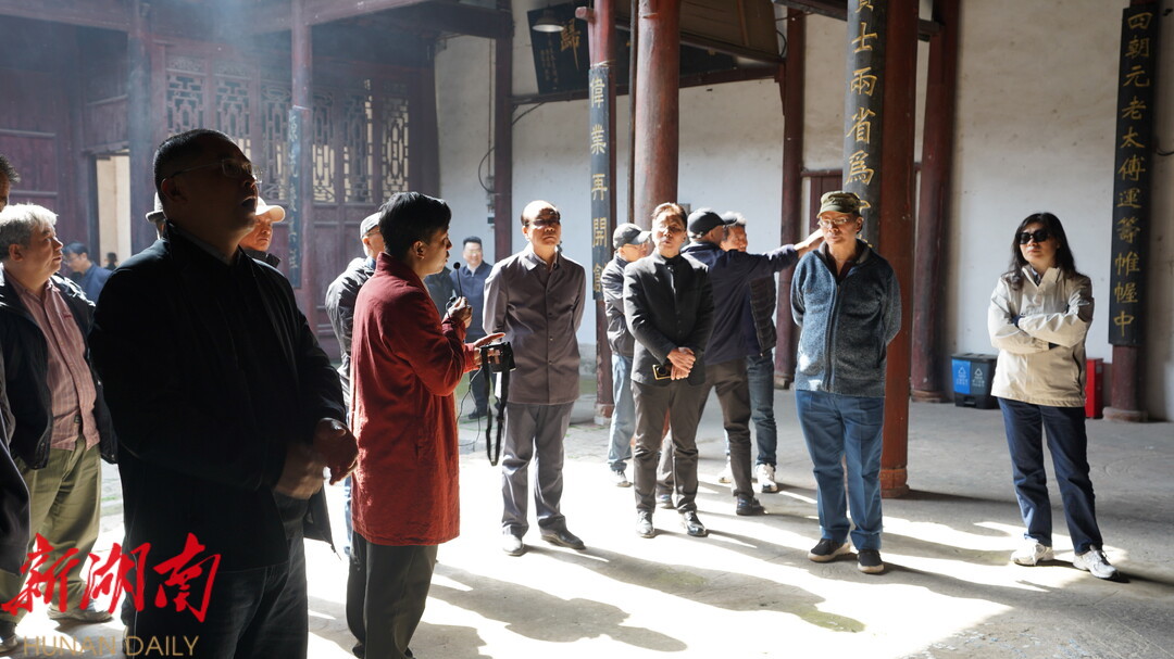 在荆坪古村,艺术家们 在专业解说员的引导下,深入了解荆坪提质改造工程,探寻古村在新时代的发展脉络。随后,沿着潘家祠堂、中方驿、古井、节孝坊等历史古迹一路前行,每一处遗迹都承载着古村悠久的历史和深厚的文化底蕴,艺术家们不时驻足观察、交流探讨,沉浸在荆坪古村独特的文化氛围中。