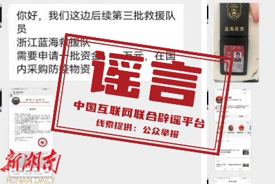 真相: 近日,缅甸发生7.9级地震,我国已有多支官方及民间救援队紧急驰援缅甸。在救援工作展开之际,有人在救援群聊中声称“我们这边后续第三批救援队员浙江蓝海救援队需要申请一批资金,一万元,在国内采购防疫物资”,并附相关“证件”图片。对此,蓝海应急救援服务中心4月1日发布声明称:从未授权任何个人或任何其他组织以“缅甸地震救援”名义进行公开募捐 ,该行为与救援队无任何关系。中国蓝天救援队也发布紧急提醒,其未发起过任何募集,也不需要募集。 呼吁公众警惕借救援队救灾名义实施的诈骗行为。(来源:“中国青年报”微信公众号)