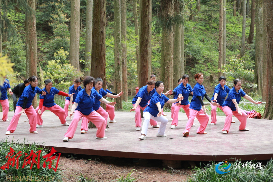 水杉林里,数百名健身气功爱好者列阵林间,在斑驳光影与清风中,以太极拳、八段锦的刚柔并济之姿,演绎了一场自然与人文交融的春日健康盛宴。太极拳的一招一式如行云流水,衣袂轻扬间与挺拔的水杉相映成趣。八段锦的动作舒展圆融,托举、俯仰间吐纳自然,与林间清新的空气融为一体。