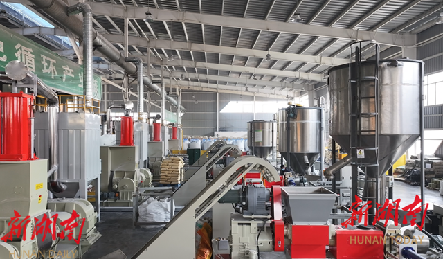 “我们从废塑料回收、预处理、分拣,到熔融再造、配方改性与颗粒成型,每一步都严格把关,今年我们新增了2条自动化生产线,不仅能实现提质增效,还能确保生产的绿色与可持续发展。”湖南省塑坤新材料有限公司生产经理刘光阵说。