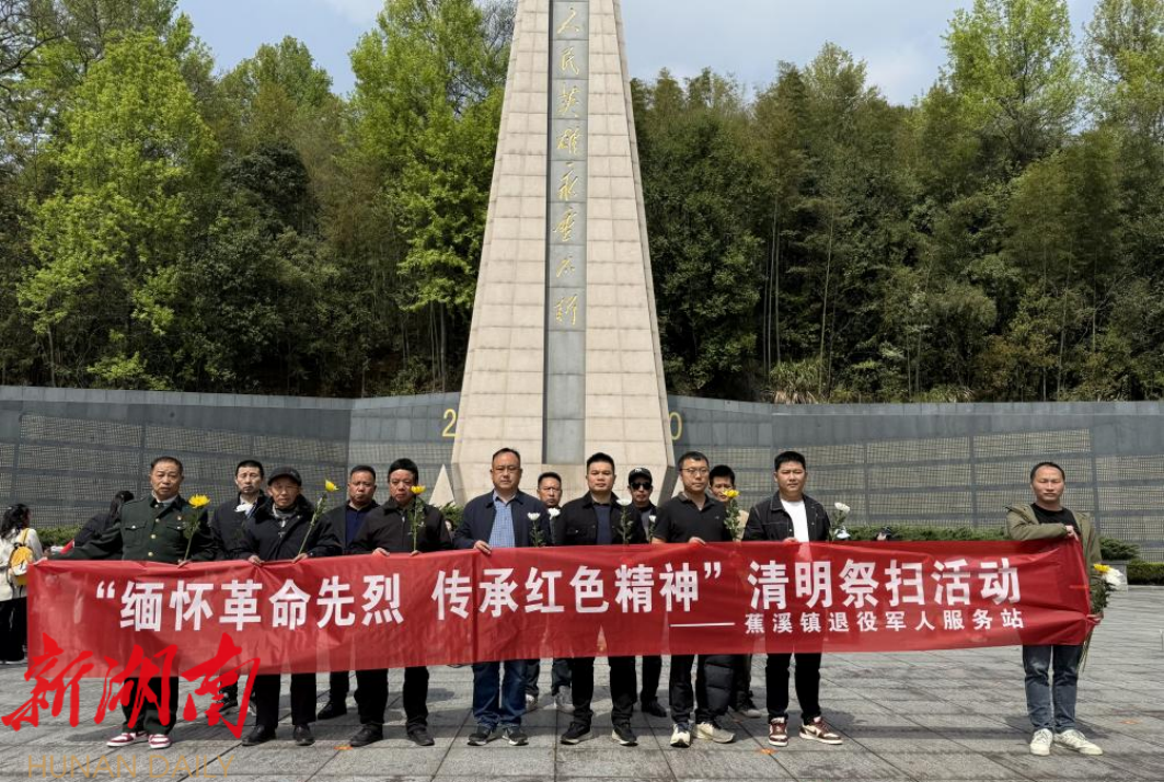湖南日报 ·新湖南客户端4月2日讯 (通讯员 成自辉 熊文斌)清明时节,苍松翠柏掩映下的浏阳市烈士陵园庄严肃穆。4月1日,蕉溪镇退役军人服务站组织各村退役军人服务专干、退伍军人代表、烈士家属等20余人,在此开展“缅怀革命先烈 传承红色精神”清明祭扫活动,以赤诚之心追思英魂,以崇敬之情传承薪火。