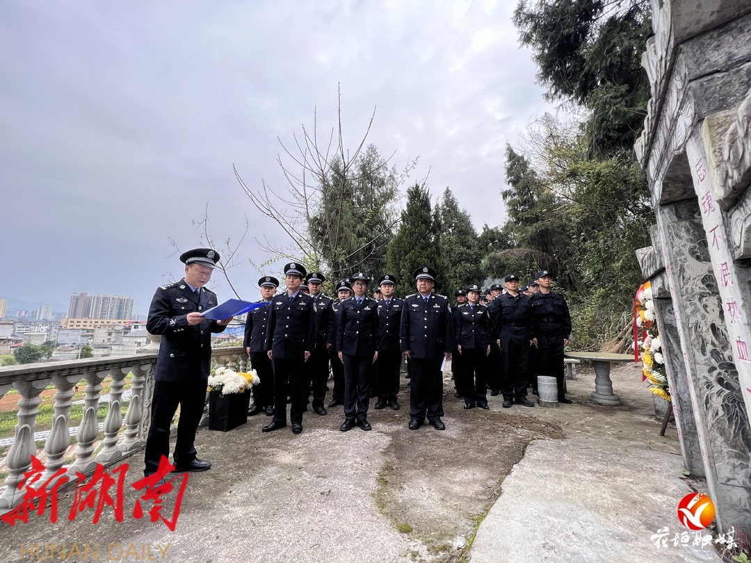 湖南日报·新湖南客户端4月2日讯(通讯员 林彬 吴向申)“爸爸,我来看您了……”清明寄哀思,忠诚铸警魂。今天上午,湘西州公安局组织新警联合花垣县公安局民警,赴花垣县钟佛山开展祭扫活动,深切缅怀全国公安系统二级英雄模范谢昌忠烈士。特别的是,烈士之女谢馨辉今年首次以人民警察身份向父亲报到,重启的“161941”警号闪耀着两代公安人的忠诚印记。花垣县人民政府副县长、县公安局局长邵国林参加祭扫活动。