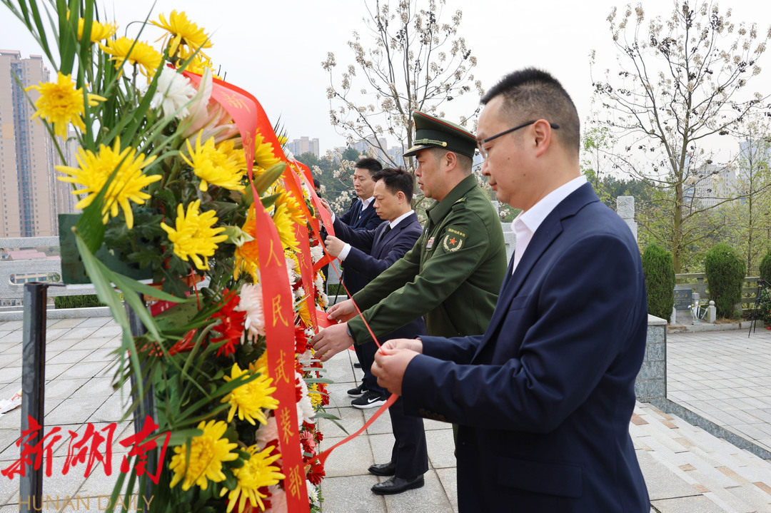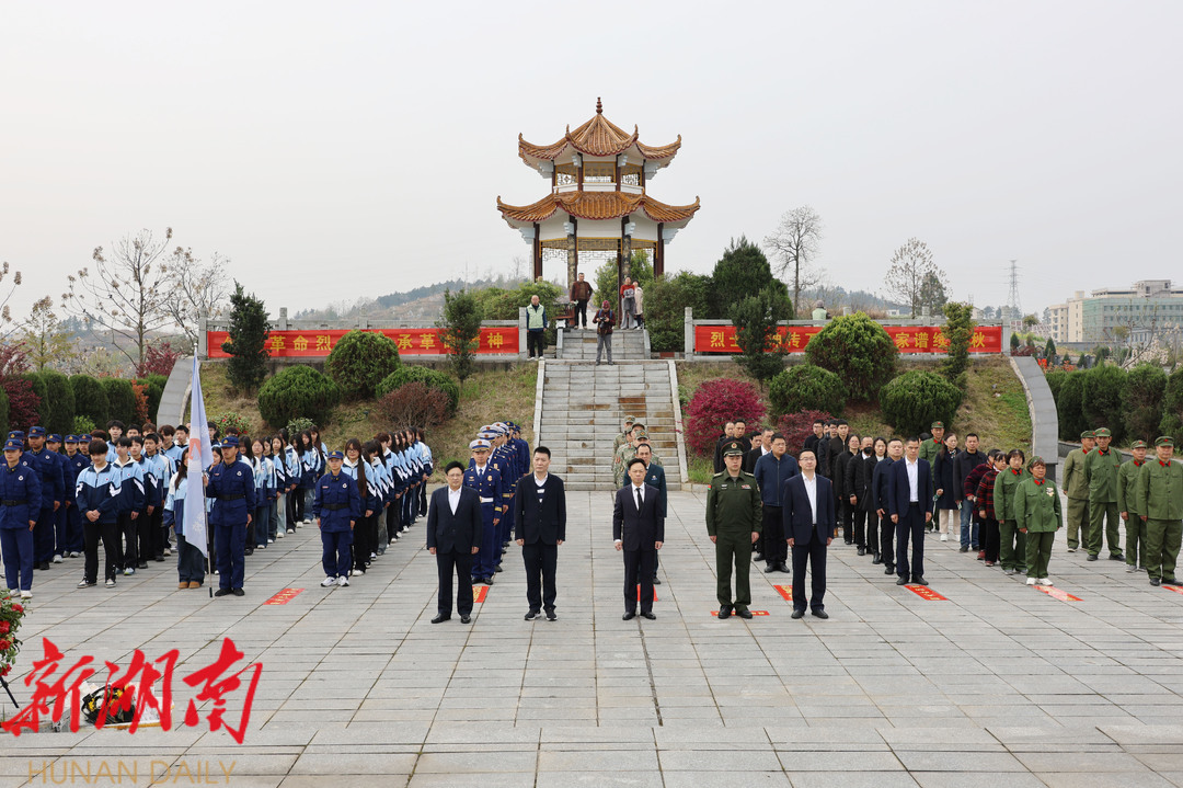 新邵县举行清明节向英雄烈士敬献花篮活动