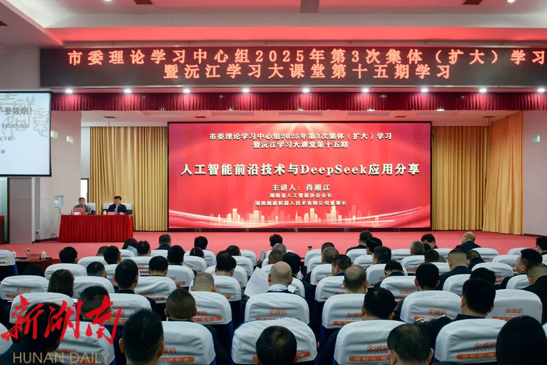 新沅江客户端4月3日讯 (记者 黄曦 李咏澎)4月2日,沅江市委副书记、市长、市委理论学习中心组副组长罗必胜主持开展2025年第3次集体(扩大)学习暨沅江学习大课堂第十五期学习。本次学习邀请湖南省人工智能协会会长、湖南超能机器人技术有限公司董事长肖湘江担任讲师,为全体学员带来了一场人工智能专题讲座。市委副书记、统战部长张心镜,市人大常委会主任孟智勇,市政协主席刘武等全体在家市领导参加学习。