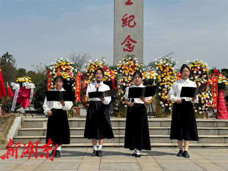 湖南日报·新湖南客户端4月3日讯(通讯员 周昱君) 为培养青少年爱国情怀,缅怀革命先烈、传承红色基因,4月3日,共青团岳阳市委联合团县委、县教体局开展岳阳市2025年青少年“缅怀先烈志 共铸中华魂”清明祭英烈示范性主题活动。来自全县中小学的200余名师生代表参加活动。