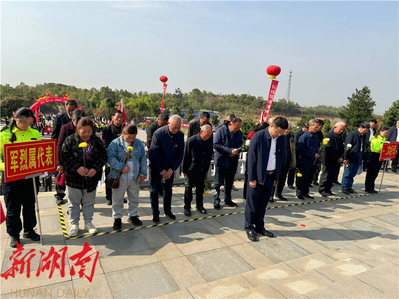 湖南日报·新湖南客户端4月3日讯(通讯员 周昱君) 为深切缅怀革命先烈的丰功伟绩,大力弘扬爱国主义革命精神,4月3日,岳阳县组织开展“缅怀先烈 铭记历史——赓续•2025•清明祭英烈”主题活动。来自全县各界的500余名代表齐聚烈士陵园广场,以赤诚之姿追忆峥嵘岁月,凝聚新时代奋进力量。县委常委、宣传部部长张哲君,副县长、县公安局局长刘斌清参加。