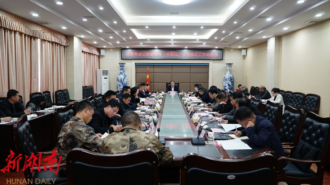 会议传达学习郴州市桂新高速公路郴州至桂阳段建设动员会精神,宣读《桂阳至新田(宁远)高速公路郴州至桂阳段用地报批及征地拆迁工作实施方案》(草案),安排部署下阶段工作。