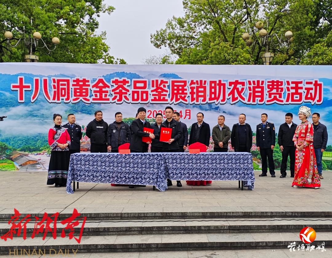 活动现场还举行了十八洞黄金茶销售签约仪式。花垣县十八洞生态农业科技开发有限责任公司与花垣五龙农业开发有限公司签署了合作框架协议,这标志着双方将通过整合资源,优势互补等形式建立长期稳定的合作关系,共同推动茶叶产业链的健康发展。