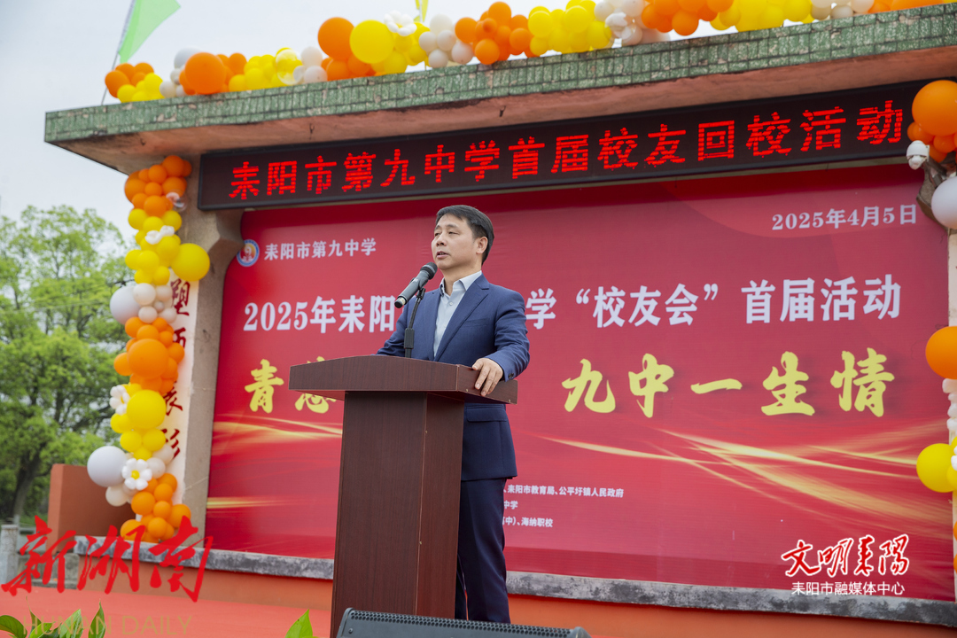 耒阳融媒4月5日讯(记者 江维东 照片 伍维华) 4月5日,耒阳市第九中学迎来了首届“校友回校”活动。来自五湖四海的校友们重返校园,齐聚一堂,在这片承载青春记忆的土地上,畅叙往日情谊,共商学校未来发展。市政协主席李云作为校友代表,出席并讲话。