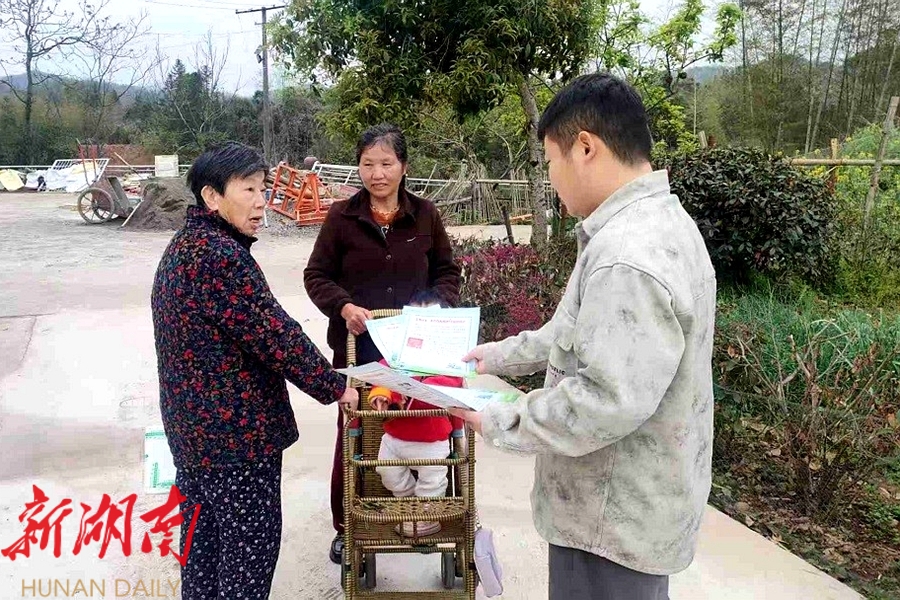 乡镇干部入户宣传森林防火知识