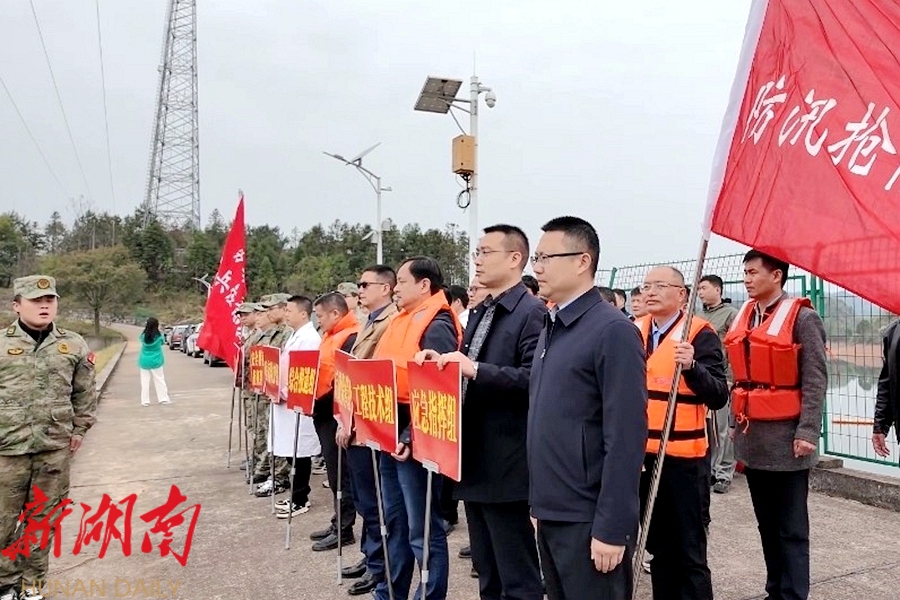 视外桃源客户端4月3日讯(通讯员: 徐毅 ) 4月2日,桃源县剪市镇根据辖区内临近沅江、湖泊水网密布、雨季降水量大的特点,组织全镇主要应急力量开展了防汛抗洪演练。演练以全镇遭遇连续强降雨天气,辖区内九龙水库水位暴涨,堤坝出现险情为模拟背景开展。