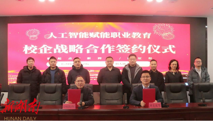 “校企合作不是挂牌仪式,而是要把生产线‘毛细血管’接入教学。”学校负责人邓星平在接待考生及家长参观图书馆二楼内的校企合作宣传屏幕时说。屏幕上播放着其代表学校与科大讯飞,中国联通等行业龙头战略签约仪式的现场照片,“办有尊严的学校,做有尊严的教师,育有尊严的学生”,这位教育者目光炯炯,深耕于潇湘教育热土已二十余载,其“三尊”教育的宣言执着地浇灌着这片职教改革大地。