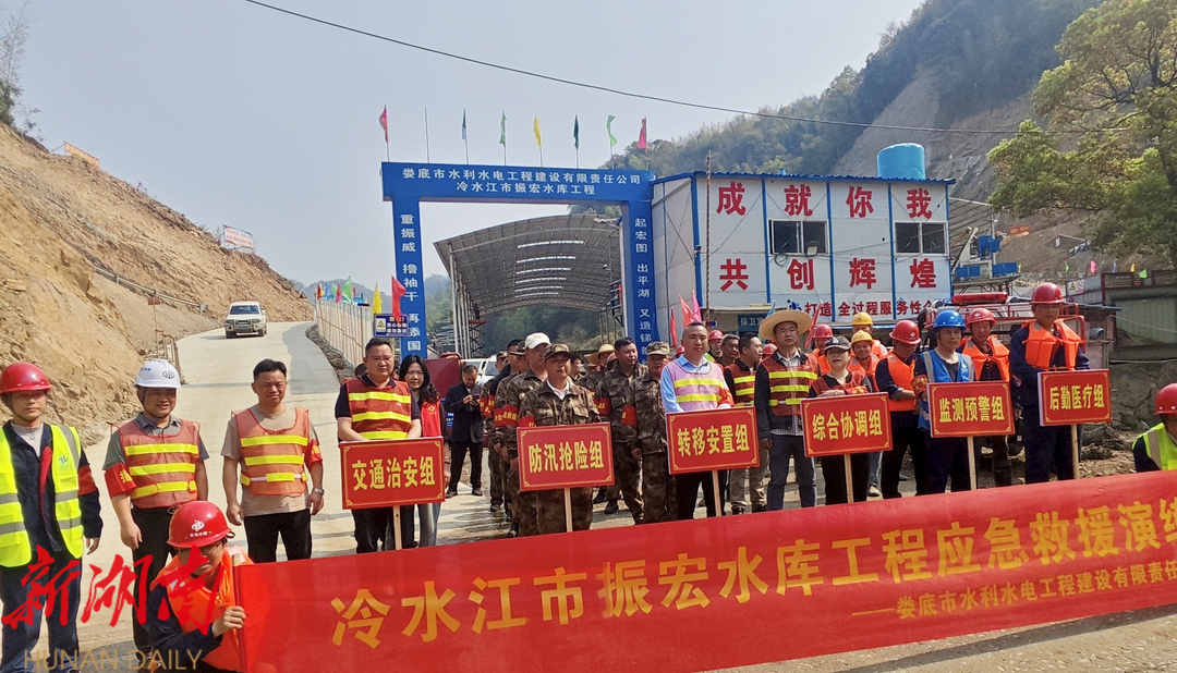 湖南日报·新湖南客户端4月7日讯(通讯员 谭军民 陈鹏 )近日,冷水江市振宏水库工程指挥部联合锡矿山街道办事处、娄底市水利水电工程建设有限责任公司等多家单位,组织开展防汛抢险与地质灾害避险综合演练。