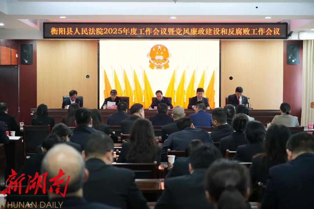 院党组书记谢海涛全面总结了衡阳县人民法院2024年的工作成绩,并对做好2025年工作提出要求:一是永葆忠心、坚守初心,铸牢绝对忠诚之魂。 要始终把政治建设摆在首位,旗帜鲜明讲政治,做到党的领导要“落得实”、政治理论要“学得实”、制度优势要“用得实”。二是围绕全局、服务大局,护航县域安全发展。 聚焦主责主业,全力维护安全稳定,服务保障发展大局,助力守护美丽蒸阳,改善增进民生福祉,推动健全社会治理。三是改革创新、守正出新,多措并举提质增效。 以改革思维、务实举措,持续深化司法体制综合配套改革,以审判理念、审判管理、审判体系机制现代化推动审判工作现代化。四是提升能力、激发活力,锻造过硬法院队伍。 要以落实市中院“青蓝规划”为契机,充分发挥“老带新、传帮带”作用,并树牢正确选人用人导向,营造干事创业的良好氛围。