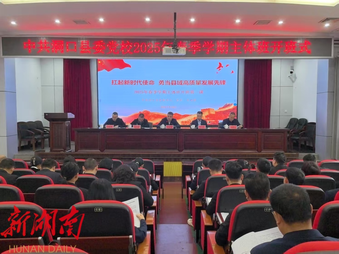 洞口融媒4月8日讯(记者:林巍浩) 4月8日,县委党校2025年春季学期主体班开班,县委副书记、县长许治国以《扛起新时代使命 勇当县域高质量发展先锋》为题,为春季学期主体班学员上开学第一课。他强调,要全面贯彻党的二十大和二十届二中、三中全会精神,锚定“三高四新”美好蓝图,认真落实省委、市委、县委全会精神,聚焦“七大攻坚”,积极推进洞口“提质增效”年活动,自觉做忠诚干净担当的党员干部,为全面建设现代化新洞口、实现“三区一中心”奋斗目标贡献自己的智慧和力量。县委常委、组织部部长唐建新主持开班典礼。