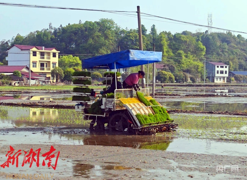 湖南日报·新湖南客户端4月8日讯(通讯员 杨万里 唐涛)日前, 笔者驱车来到贤水河畔的零陵区富家桥镇峦石山村,两台插秧机在田里来回穿梭,一个上午功夫就机插早稻100余亩。正在忙于机插早稻的种田大户冯新荣介绍:“今年共在峦石山、大庙头、永荷三个村共租种稻田810亩, 全部是插双季稻的,比去年多种155亩,预计在4月20日左右可以完成早稻机插。”