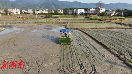 在大树脚村,高速插秧机在水田高效工作。种植大户杨新民说,机械插秧一天能完成100亩,相比人工插秧,效率提高近10倍。