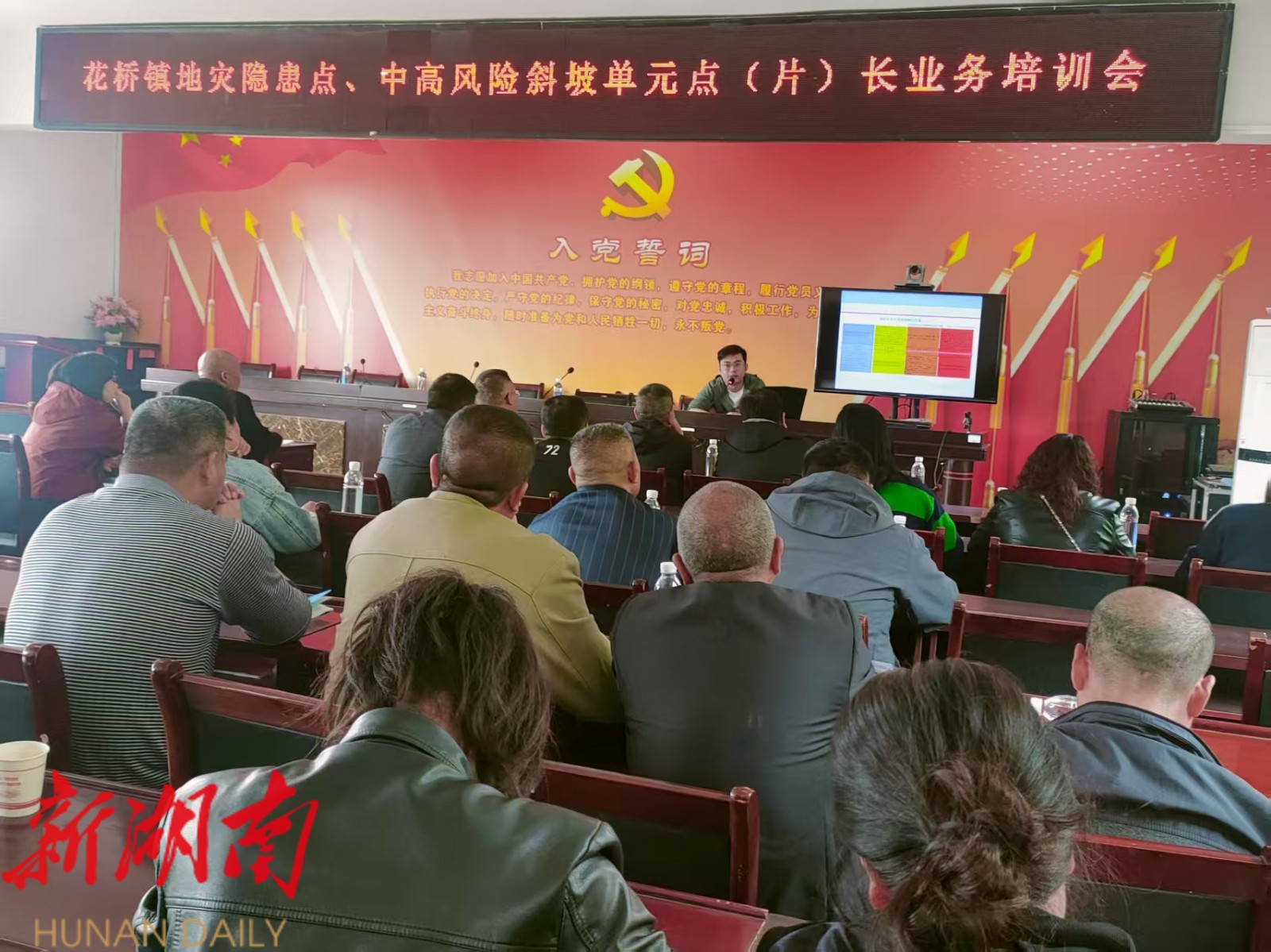 中方融媒4月8日讯 (通讯员:雷雪城) 4月8日,中方县花桥镇地灾隐患点、中高风险斜坡单元点(片)长业务培训会召开。会议特别邀请了湖南省自然资源调查所高级水工环工程师胡玄进行授课,花桥镇人民政府分管领导、乡镇自然资源所工作人员及地灾隐患点、中高风险斜坡单元点(片)长共40余人参加培训。