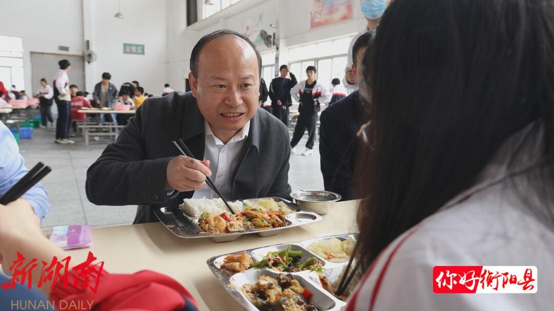 衡阳县融媒4月8日讯(记者:曾立林 张兴宇 ) 4月8日,县委书记、县长孙浩到县一中督导校园食品安全工作,并与学生共进午餐。他强调,要深入学习贯彻习近平总书记关于食品安全的重要论述,切实守牢校园食品安全底线,着力提升“校园餐”质量,让师生吃得放心、吃得健康。
