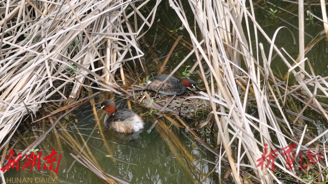 湖南日报•新湖南客户端4月8日讯 (通讯员 盘俊杰 王玉珏) 又到一年候鸟繁殖季节,近日,记者在舜水河畔用镜头记录到国家“三有 ” 保护动物小鸊鷉的筑巢繁殖场景,这对 “水上建筑师”正用芦苇编织爱的家园,为生态蓝山增添了一抹生机和活力。