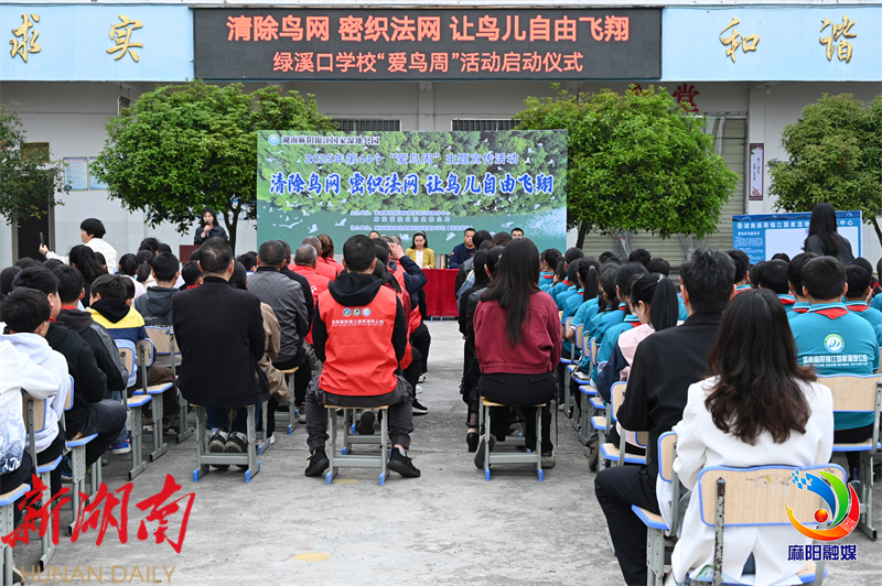 麻阳融媒4月8日讯(记者 颜琦)4月7日上午9时,麻阳绿溪口学校“爱鸟周”活动在嘹亮的国歌声中拉开帷幕。本次活动以“清除鸟网,密织法网,让鸟儿自由飞翔”为主题,旨在通过系列实践活动增强学生与公众的生态保护意识,呼吁全社会共同关注和保护鸟类栖息地。
