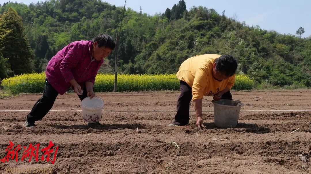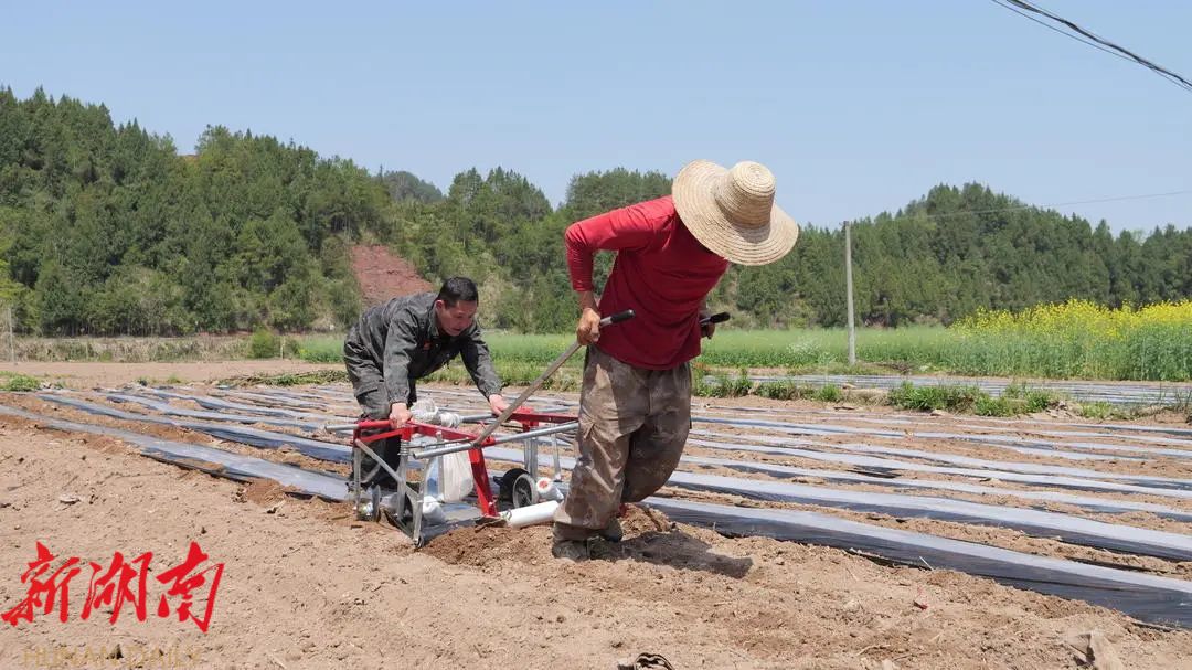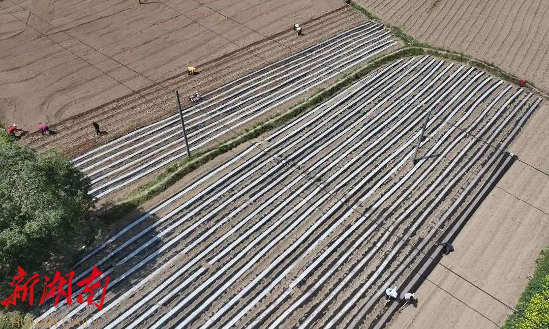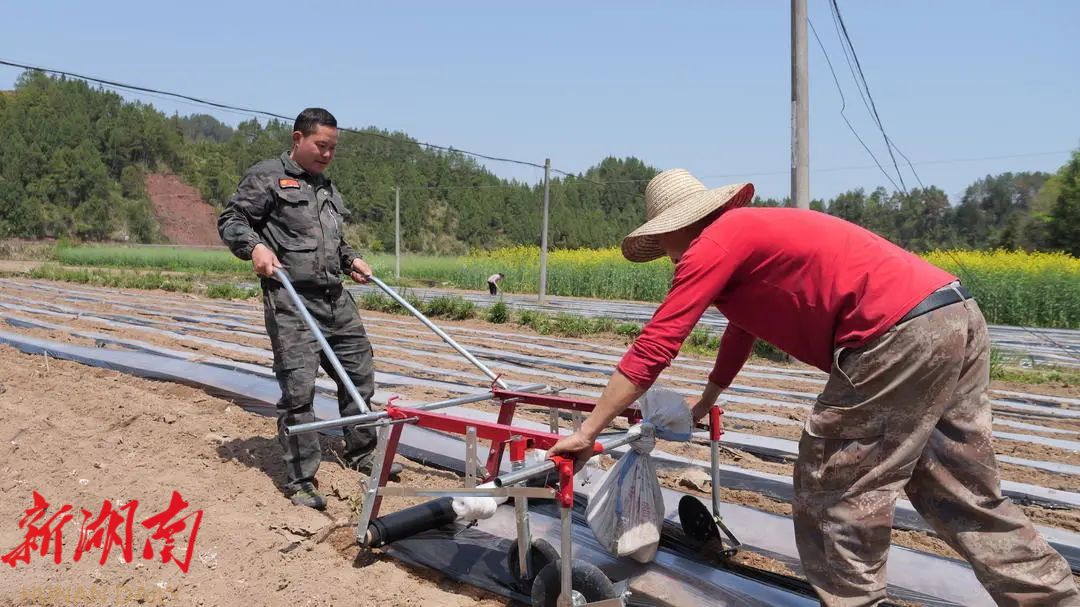 湖南日报·新湖南客户端4月7日讯(通讯员 张思 张芬)4月7日,春风和煦,在廖家村镇苗寨社区集中连片的70亩高标准农田里,20余名村民正抢抓农时开展春耕生产,他们分工明确,有的弯腰细致地铺设地膜,有的沿着笔直的垄沟下花生种子。这是廖家村镇“党建+产业”示范点之一,由党员致富带头人龙昌猛带头创建,既是该镇规模化种植小米红衣花生的示范基地,也是探索农业转型升级“创新试验田”。