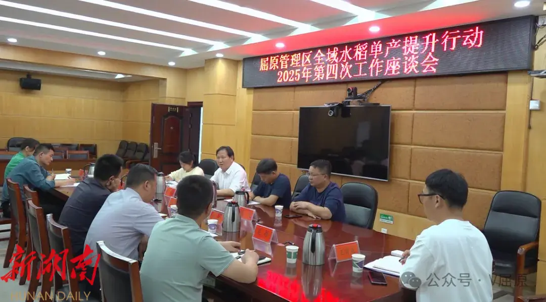 在随后召开的专题座谈会上,屈原管理区各乡镇负责人围绕水稻种植中存在的难点堵点问题作详细汇报,专家团队针对问题逐一解答,提出意见建议,为早稻生产提供科学指导。 许靖波指出,屈原管理区实施全域水稻单产提升行动的做法,得到部、省领导肯定性批示,并由省农业农村厅作为先进经验全省推介,上级部门将持续加大政策支持力度。屈原管理区要牢牢把握这一契机,将落实中央一号文件与推动农业高质量发展紧密结合,将单产提升行动作为履职尽责的重要任务,全心全意把事情做好做实,确保经验可复制、可推广。要进一步聚焦行动方案精准发力,高标准推进全域水稻单产提升行动各示范片、示范点建设,强化田间杂草管控,针对恶苗病等突出问题,落实“带药下田”措施,科学增加栽插密度,进一步加强品种筛选,结合品种展示,科学选择适宜品种,动态优化品种布局。针对即将到来的插秧高峰期,许靖波要求严格把控整田质量,推行早插、浅插、密插技术,强化水分管理,确保万亩示范片绿色防控措施到位。同时要进一步注重方式方法,在尊重现有耕作基础上引导农户主动参与,充分调动农户的积极性。通过细化环节管理、优化工作机制,系统总结“屈原经验”,形成标准化操作流程,把屈原管理区全域水稻单产提升行动打造成全国可复制推广的示范样板。