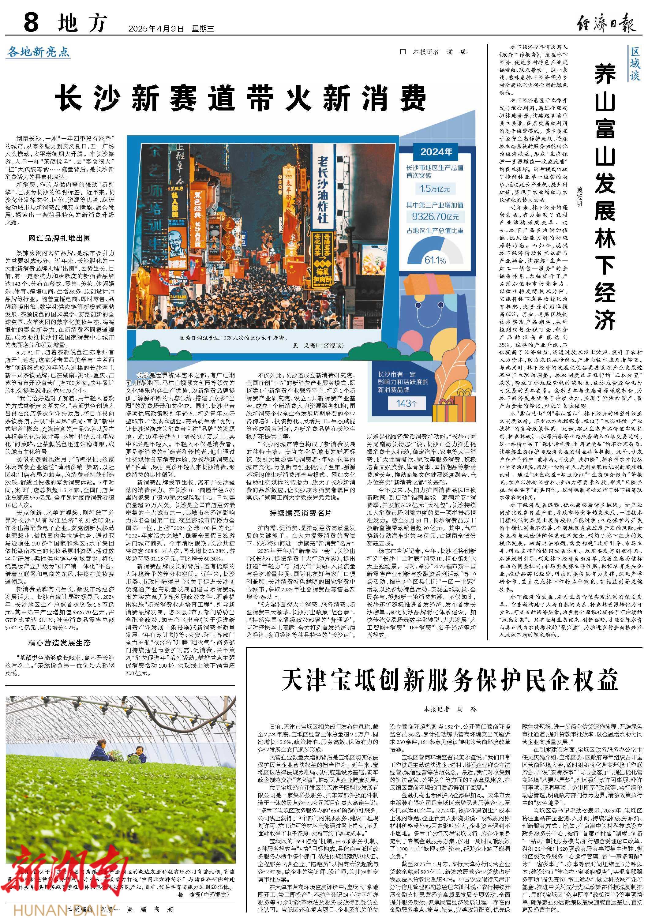 杨志仁告诉记者,今年,长沙还将创新打造“长沙十二时辰”消费IP,精心策划六大主题场景。同时,举办“2025福布斯中国新零售产业创新与投融资系列活动”等10场活动,推出9个区县(市)“一区一主题”活动以及多场特色活动,实现全城动员、全民参与,掀起新一轮消费热潮。不仅如此,长沙还将积极推进首发经济,发布首发长沙榜单,深化长沙品牌孵化体系建设。加快传统交易场景数字化转型,大力发展“人工智能+消费”“IP+消费”、谷子经济等新兴模式。
