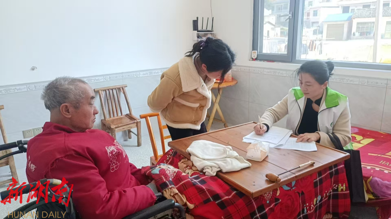 “娭毑,最近身体好些了吗?这个月的低保金按时到账了没?”在低保户